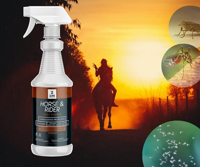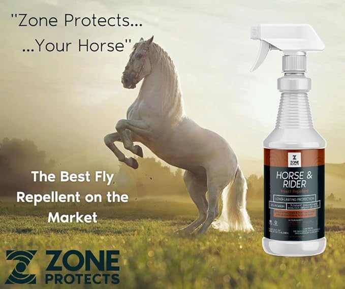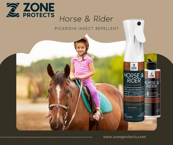 Zone Protects Horse & Rider is made with Picaridin and is highly effective on over 400 species of flies and mosquitoes for 12-hours.